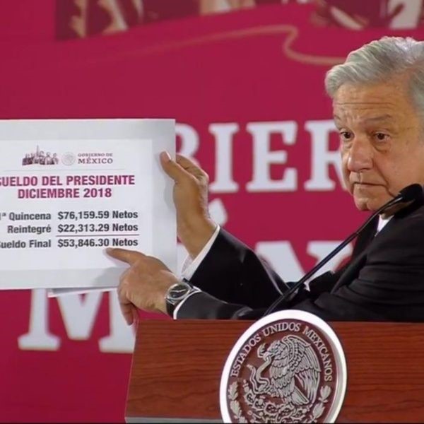 El Universal, obtuvo comprobantes de percepciones y devoluciones del Presidente, que tienen la clave 1032 y que corresponden a las tres primeras quincenas de su mandato, estos datos se dieron través de la oficina de Transparencia.Los días que constan desde el 1 al 15 de diciembre pasado, López Obrador percibió como sueldo neto, descontando impuestos, 76 mil 159.59 pesos, el mismo sueldo que venía devengando el expresidente Peña Nieto desde 2012.El 18 de diciembre del año pasado el mandatario informó que devolvería a Tesorería poco más de 22 mil 313 pesos.