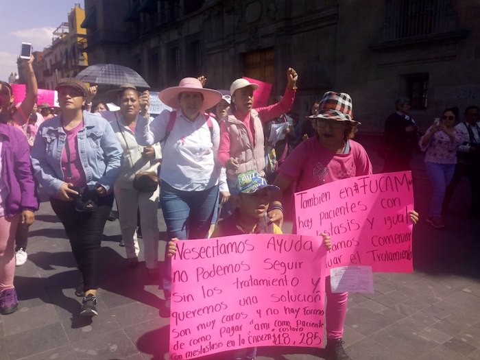 Un grupo de al menos 100 mujeres protestaron la mañana de este viernes, frente al Palacio Nacional y ante las oficinas del Gobierno de la Ciudad de México para exigir a la Secretaría de Salud que el Instituto de Salud para el Bienestar (Insabi) mantenga el subsidio que el Seguro Popular daba a la Fundación de Cáncer de Mama (Fucam).