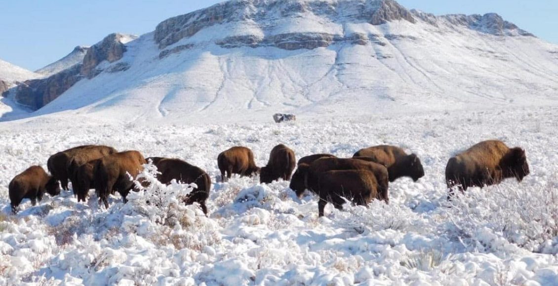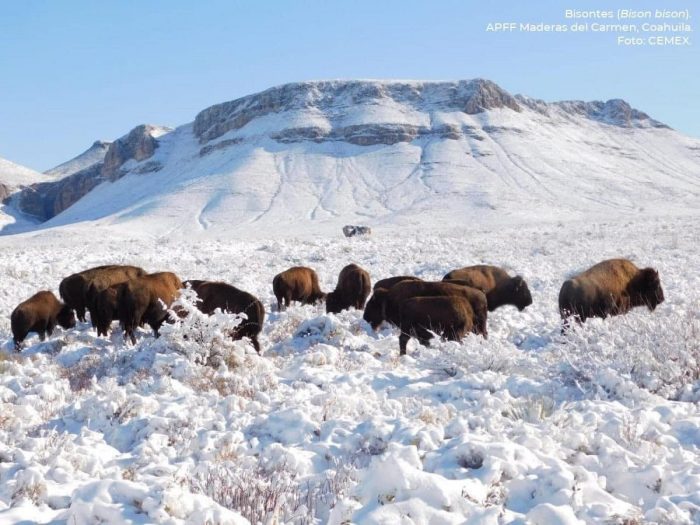 Una intensa nevada cayó en Maderas del Carmen, Coahuila, una área natural protegida con la cual se busca preservar al Bisonte americano que había estado ausente durante más de 100 años.