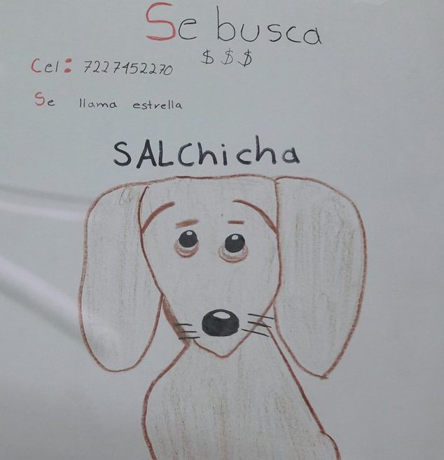 El pequeño de 11 años, José Miguel, dueño del perro, al no tener ninguna fotografía de su mascota desaparecida, decidió hacer a mano sus propios carteles de “Se busca”, en donde, además de incluir la información de Estrella, agregó un dibujo del perro salchicha.