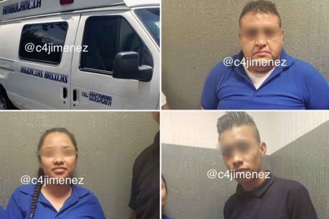 Con las características referidas de la ambulancia,se logró darle alcance a la ambulancia, donde detuvieron a una mujer de 27 años de edad y dos hombres de 37 y 22.