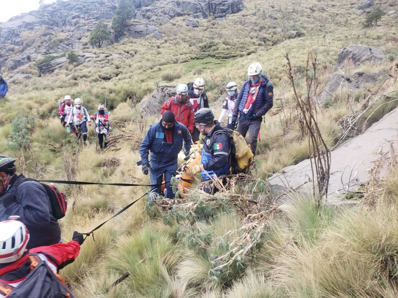 El acompañante de la persona accidentada se unió al grupo y ubicó el lugar exacto del accidente, aproximadamente a 4 mil 950 metros sobre el nivel medio del mar, donde horas más tarde se hizo contacto con el cuerpo de la víctima, un hombre de 36 años de edad originario del estado de Puebla, el cual se recuperó del fondo de la barranca con el uso de cuerdas y camilla rígida, para extraerlo, empaquetarlo e iniciar el descenso.