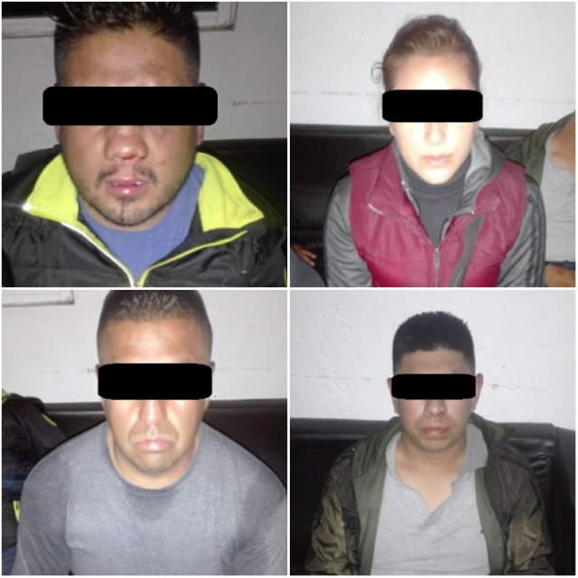 Los policías municipales aseguraron a Raúl “N”, de 29 años de edad; José Luis “N”, de 41 años; Gabriel “N”, de 28 años, y Alejandra “N”, de 33 años, quienes dijeron pertenecer a la Secretaría de Seguridad del Estado de México (SSEM), donde se desempeñan como policías estatales en el área de investigación.