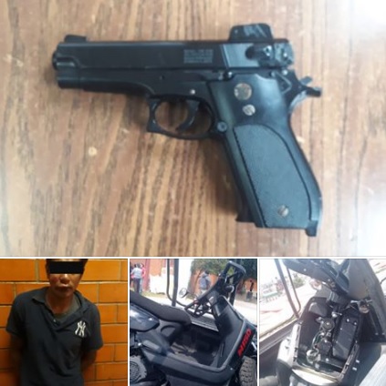 Al realizarle una revisión, se le halló fajada una réplica de pistola, misma que no pudo acreditar.