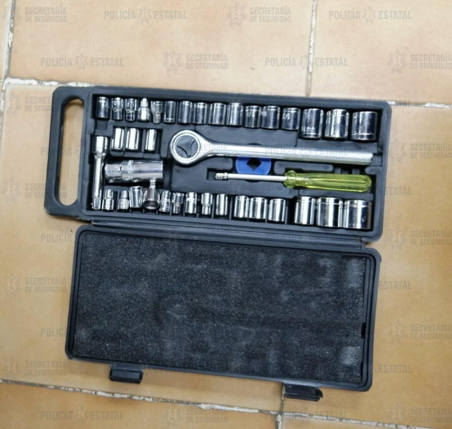 En la batea de la camioneta, se localizaron un motor de licuadora; una aspiradora; un acumulador color negro; un estuche de dados mecánicos con 38 piezas y una pantalla plana de 15 pulgadas.