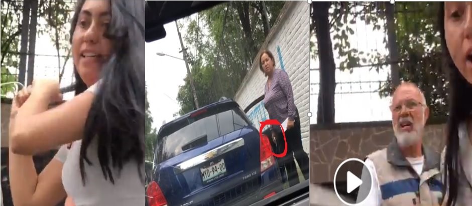 Los tripulantes de la camioneta azul, un hombre mayor, una mujer y una joven de aproximadamente 20 años de edad, comenzaron a agredirla.