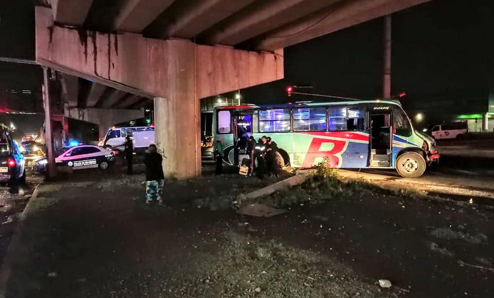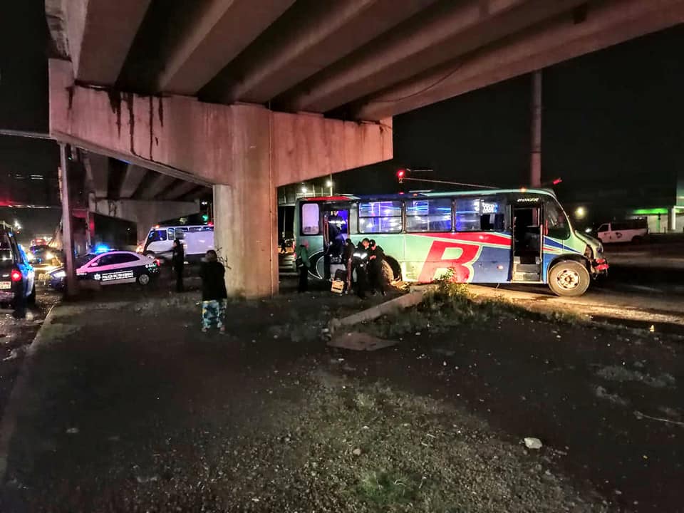 De acuerdo con las autoridades el hecho se registro esta mañana cerca de las 6:00 horas, cuando el autobús de la Línea Baltazar con número económico 18 circulaba sobre la antigua Carretera Federal México-Pachuca con dirección a la Base Aérea en Tecámac al parecer a exceso de velocidad y al pasarse el alto provoco que se impactará contra una unidad, que quedo debajo del puente vehicular conocido como “Gallineros”.