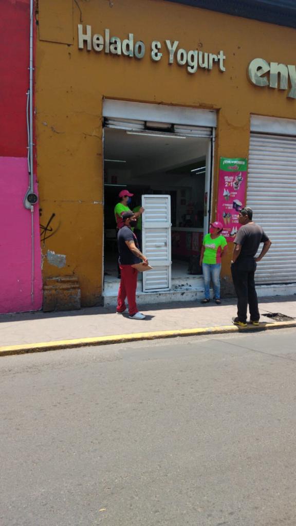 Personal de la Dirección de Regulación Comercial, realizaron recorridos por el municipio de Texcoco para notificar a los dueños de giros comerciales no esenciales sobre la suspensión temporal debido a la emergencia sanitaria por COVID-19.