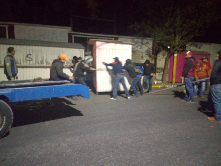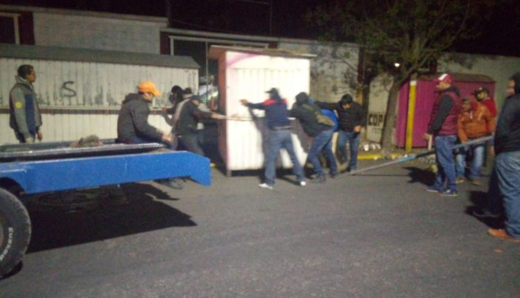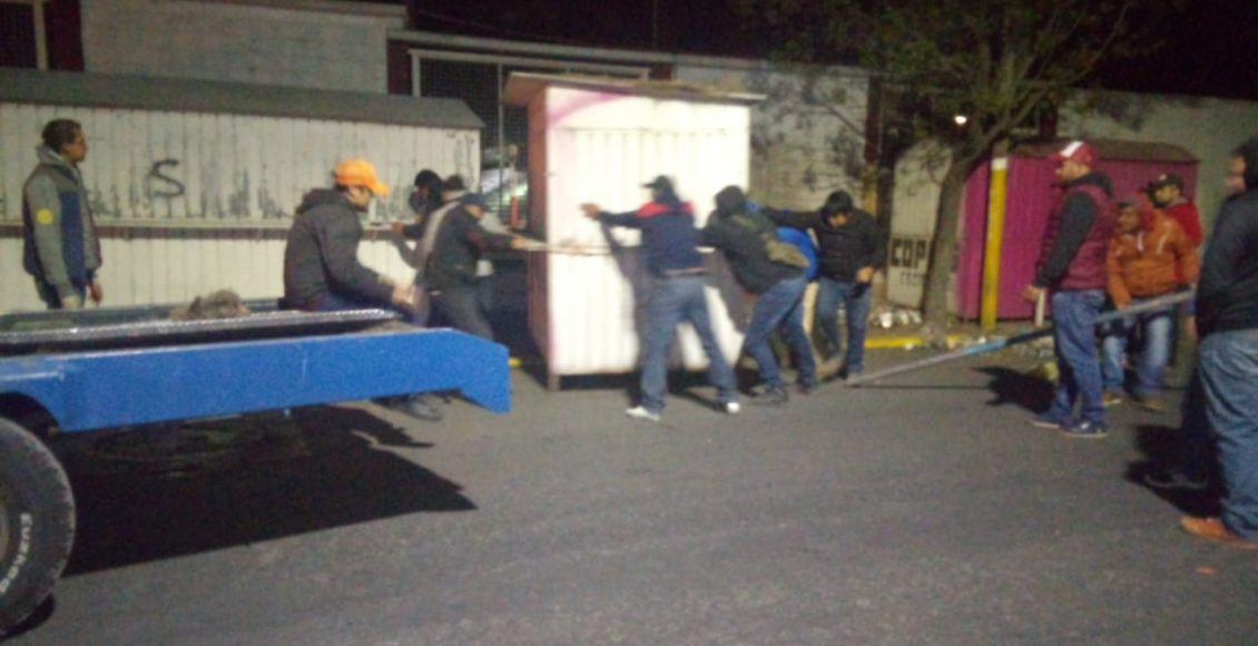 La policía municipal traslado a un depósito en grúas los puestos metálicos. Los uniformados se presentaron sin armamento y hubo un representante de la comisión de Derechos Humanos Municipal, para que testificara que no hubiera ningún tipo de violencia; los dueños de las casetas ya habían sido informados del retiro de las mismas.