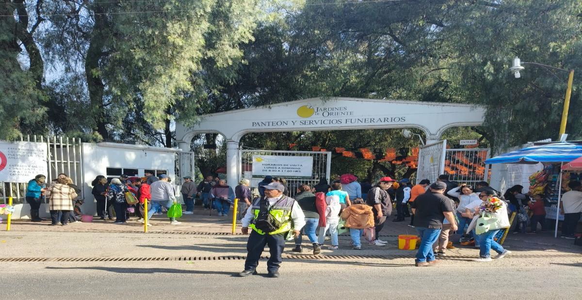 Para el operativo en panteones se destinaron 81 elementos, a bordo de 34 unidades, con las que se realizaron recorridos preventivos de seguridad y apoyo a la movilidad.