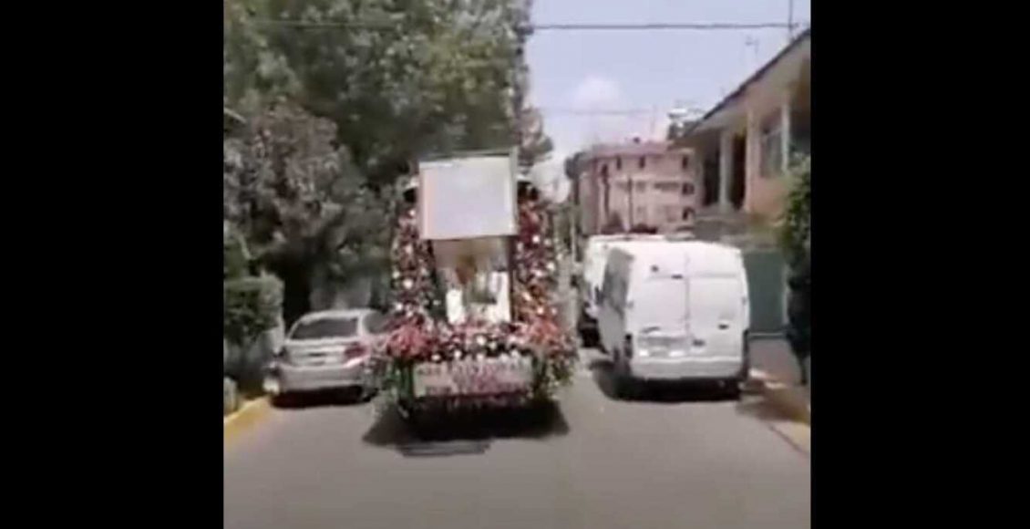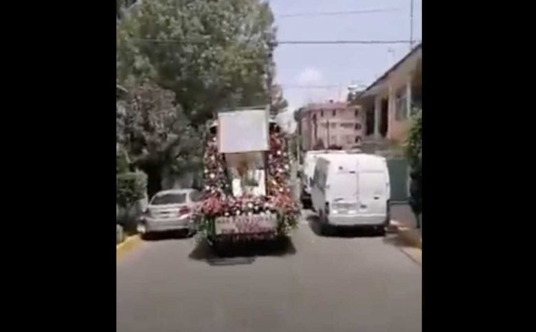 El recorrido de la imagen de unos dos metros de altura, se hacía a bordo de una camioneta y era transmitido en redes sociales por los organizadores. En el vehículo en que era transportado, aparentemente sufrió un fuerte movimiento a causa de un bache y es cuando la caja de cristal en que va, se ladea y cae.