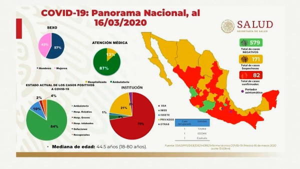 Hasta este lunes, se confirmaron 82 casos de coronavirus en México, así lo dio a conocer en conferencia de prensa la Secretaría de Salud.