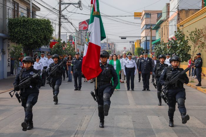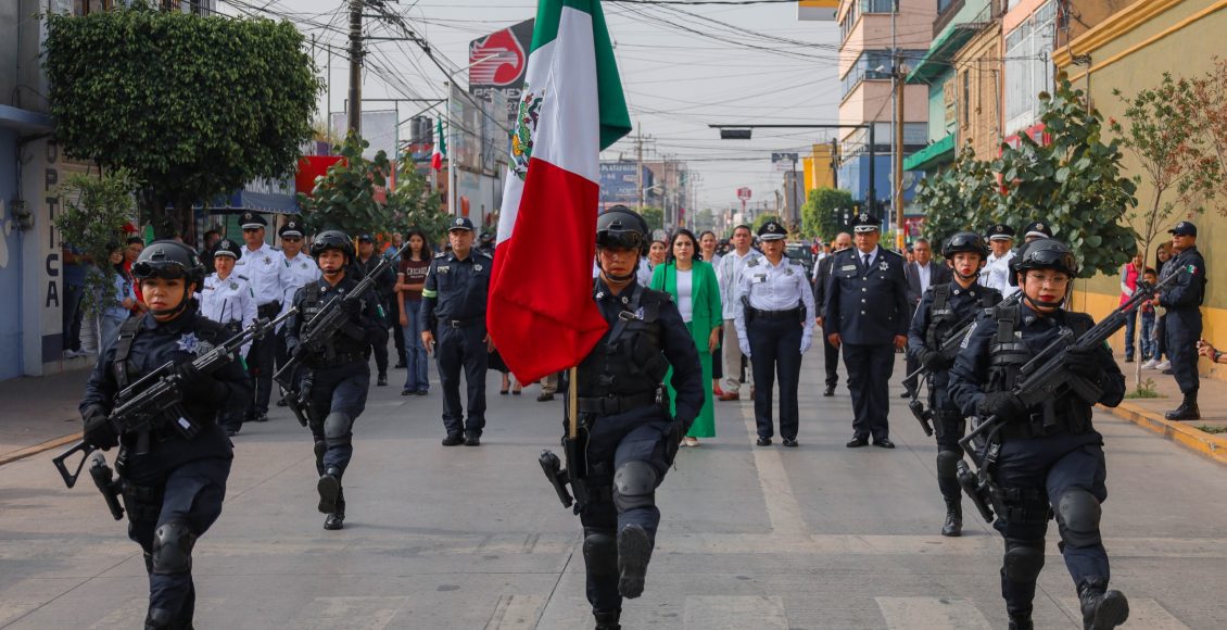 En un acto de igualdad y cercanía con las y los texcocanos el gobierno municipal de Texcoco colocó un templete frente a la presidencia municipal durante el desfile del 214 aniversario de la Independencia Mexicana, con la participación de la Dirección de Seguridad Pública y Movilidad, direcciones de gobierno e instituciones educativas, privadas, clubes de la tercera edad, la comunidad LGBTQ+ y charros de Texcoco.