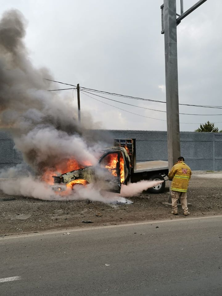 Automovilistas que circulaban sobre la carretera federal Texcoco-Lechería alertaron al departamento de Protección Civil y Bomberos de Tezoyuca sobre el incendio de una camioneta sobre la vía.