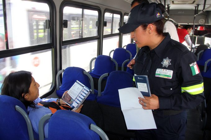 El Gobierno del Estado de México, a través de la Secretaria de Movilidad, implementó operativos con perspectiva de género para garantizar la seguridad de las mujeres a bordo del transporte público, a fin de evitar que sufran algún tipo de delito o acoso sexual en sus traslados, a partir de brindarles orientación, así como ayuda psicológica, jurídica y de trabajo social.