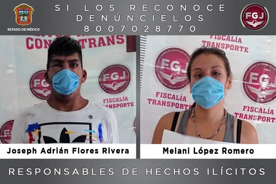 López Romero y Flores Rivera fueron detenidos el día 26 de junio de este año, luego de que abordaron un vehículo de transporte público de la marca Nissan, tipo Urvan 350, de la ruta Autobuses del Valle de México, en la colonia Miguel Hidalgo, en Nicolás Romero. Estas personas amagaron con una réplica de arma de fuego a los usuarios, a quienes despojaron de sus pertenencias y dinero.