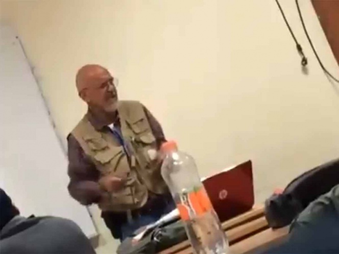 «Soy hombre como los varones de aquí… y ustedes como mujercitas, pues son mujercitas y bueno, la carne es débil, la tentación es grande, decía mi compadre”, dice el docente a los estudiantes.