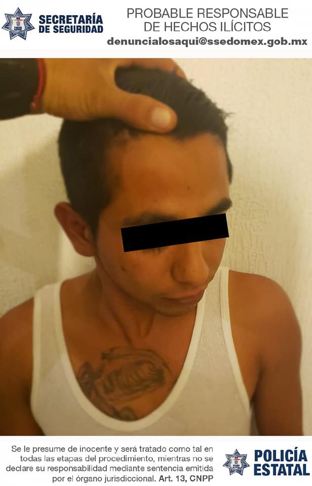 Derivado de una denuncia anónima, personal de la Dirección General de Combate al Robo de Vehículos y Transporte (DGCRVyT) de la SS, y de Mandamientos Judiciales de la FGJEM, en acción coordinada, dieron con el paradero de Ricardo “N”, de 25 años de edad, y lo capturaron en la Plaza Luis Cerón, afuera del Palacio Municipal de Los Reyes la Paz.
