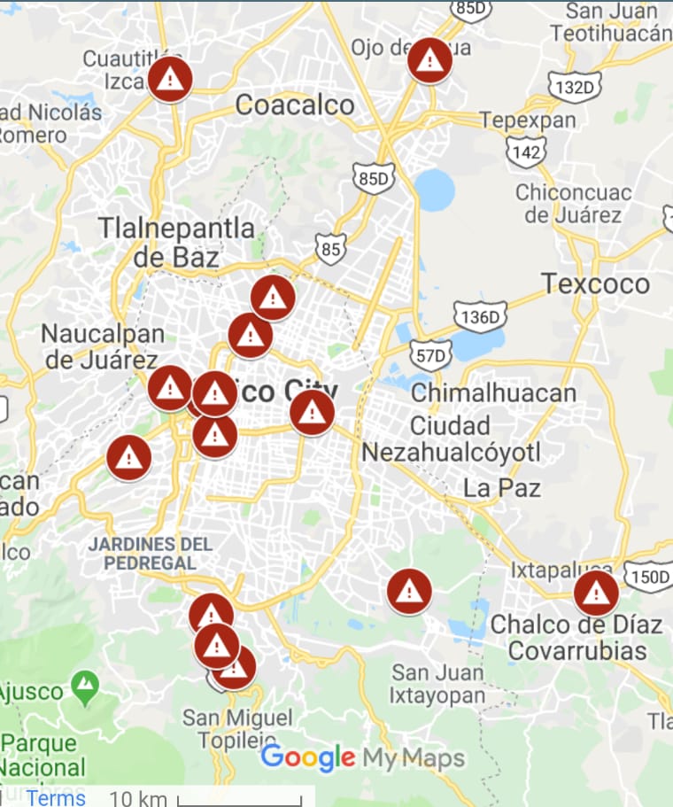 las zonas más afectadas son Indios Verdes, Insurgentes Norte, Polanco, Santa Fe, Zaragoza, Viaducto y Universidad.