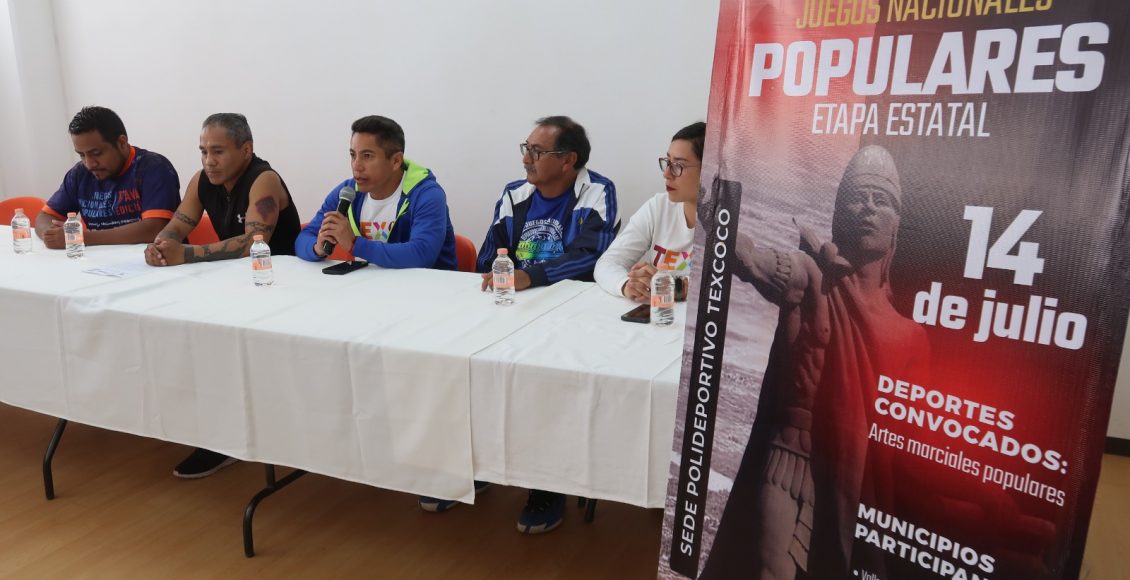 En conferencia de prensa en el polideportivo de Texcoco, en donde estuvieron presentes en representación de la presidenta municipal de Texcoco Elizabeth Terrazas Ramírez el Subdirector del Deporte Alejandro Mendivil López, el municipal de la organización de los Juegos Nacionales Populares Roberto Carlos Barrera Limas, el delegado Estatal de la organización Julio Cesar Rodríguez Jiménez.