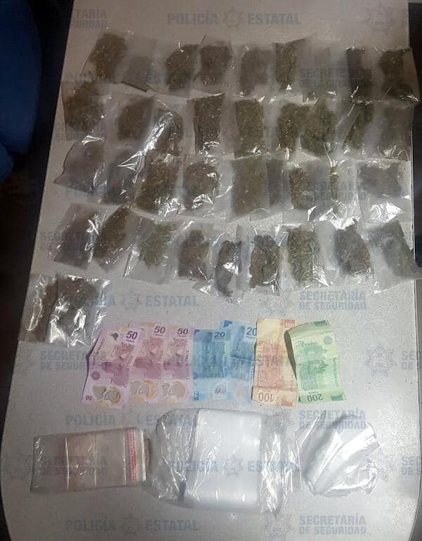 Al acercarse al sitio, varios jóvenes que se encontraban cerca corrieron en diferentes direcciones, sin embargo, pudieron observar a distancia que, al interior del inmueble, se encontraban 39 bolsitas de plástico en cuyo interior contenían hierba con las características de la marihuana, además de dinero en efectivo, quizá producto de la venta y un paquete de bolsas nuevas para empaquetar.