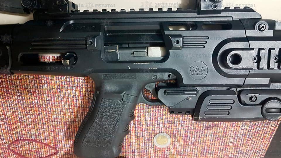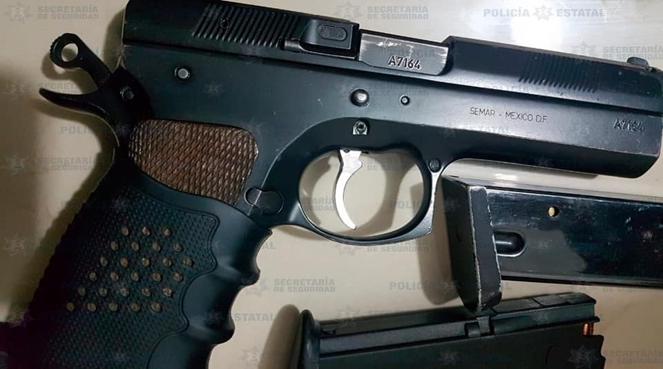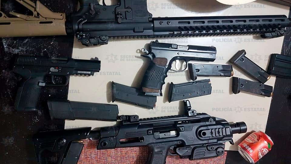 Tras realizar un llamado a las unidades médicas, los Policías Estatales con apoyo de la Policía municipal, iniciaron una inspección de la vivienda en la que hallaron sobre una mesa un fusil calibre .223, una pistola tipo escuadra calibre 5.728, una pistola 9 milímetros con adaptador de ametralladora y otra pistola más tipo escuadra, así como siete cargadores abastecidos de diversos calibres.