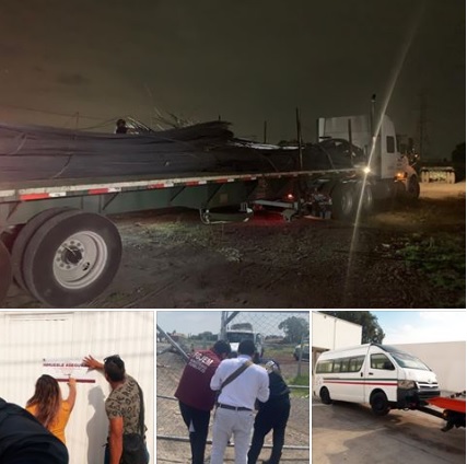 En otra movilización realizada en un inmueble de la carretera México-Pachuca, personal de la FGJEM recuperó un vehículo de transporte público desvalijado y con reporte de robo, además fue encontrada carrocería de otro vehículo también con reporte de robo.