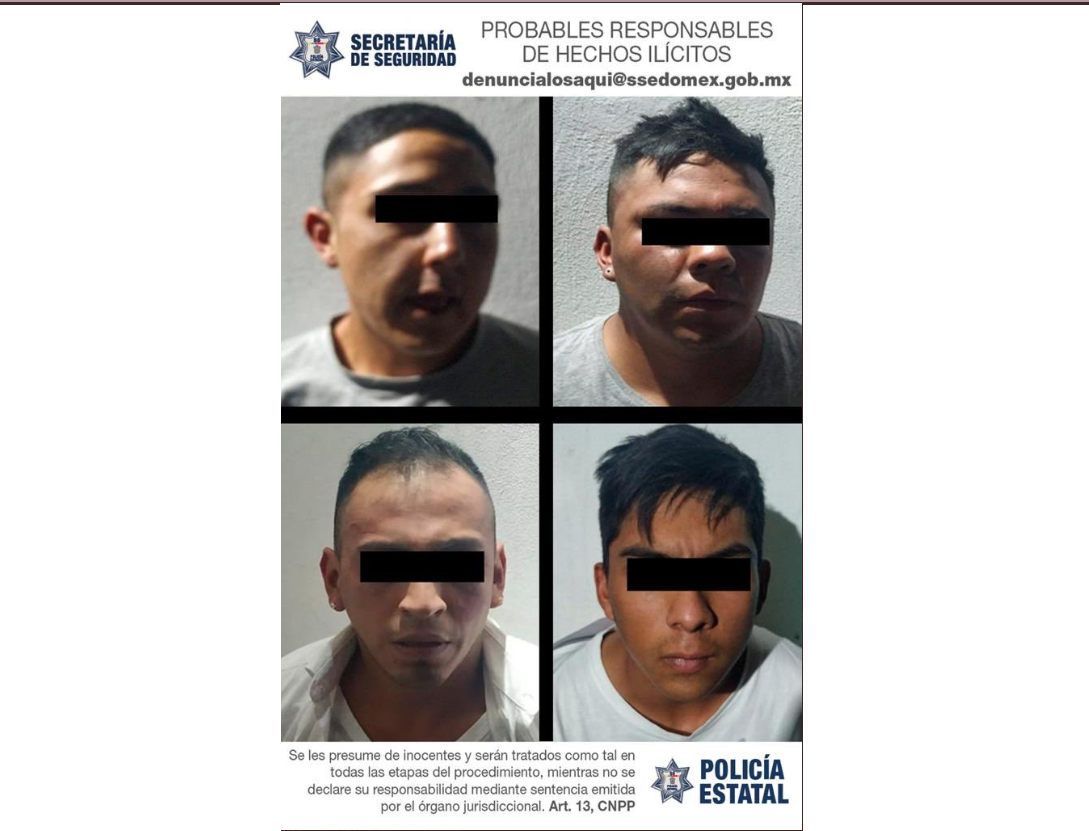 Los otros cinco involucrados, entre quienes se encuentra un menor de edad, fueron detenidos e identificados como Mario Alberto «N», de 32 años; Bryan «N», de 21; Alan Ernesto «N», de 25, y Orlando «N», de 21.