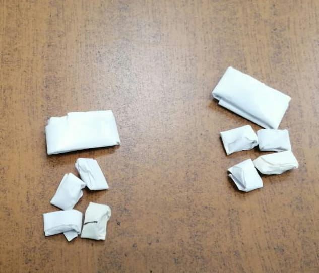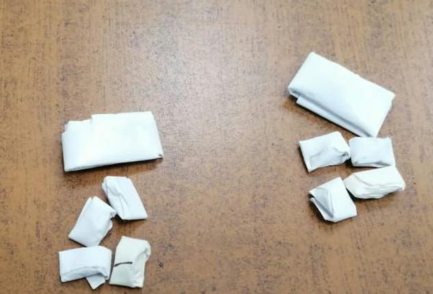 Primeramente a quien dijo llamarse Humberto «N» se le hallaron en la bolsa derecha de su pantalón cinco envoltorios y/o grapas en cuyo interior hay sustancia blanca con características de la cocaína en piedra. En tanto, la segunda persona detenida que respondió al nombre de Adriana «N», quien además estaba en estado etílico y con actitud agresiva, se le hallaron en una de las bolsas de su chamarra grapas con la misma sustancia; finalñmente, a quien dijo llamarse Geovanny «N», se le encontró un arma de fuego tipo revolver calibre .22 entre sus ropas.
