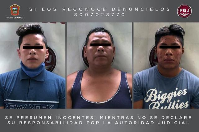 Se trata de Alberto «N» de 40 años de edad, así como los hermanos Christopher «N» de 20 años y Erick Yovani «N» de 22 años respectivamente. Estos sujetos fueron asegurados en la avenida Toluca, de la colonia Santa Cruz del Monte, en el municipio de Teoloyucan, como parte de una investigación iniciada por la FGJEM.