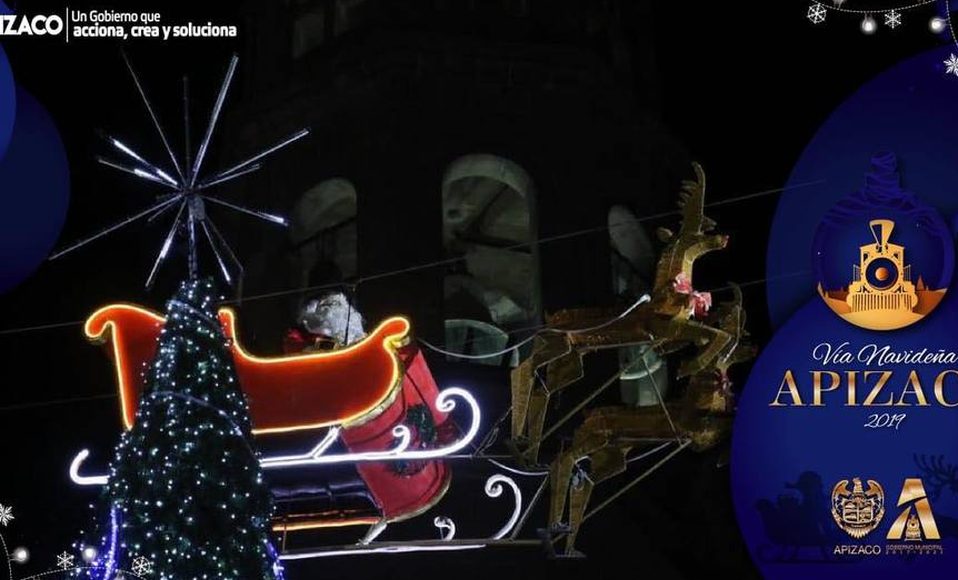 El Ayuntamiento de Apizaco, le dio la bienvenida a la Navidad el viernes pasado con un espectáculo de danza y música que culminó con el encendido del árbol y la llegada de Santa Claus, quien voló a bordo de su trineo sobre los asistentes del evento sin embargo, el trineo levantado y transportado por cable no alcanzó a sortear un edificio y chocó.
