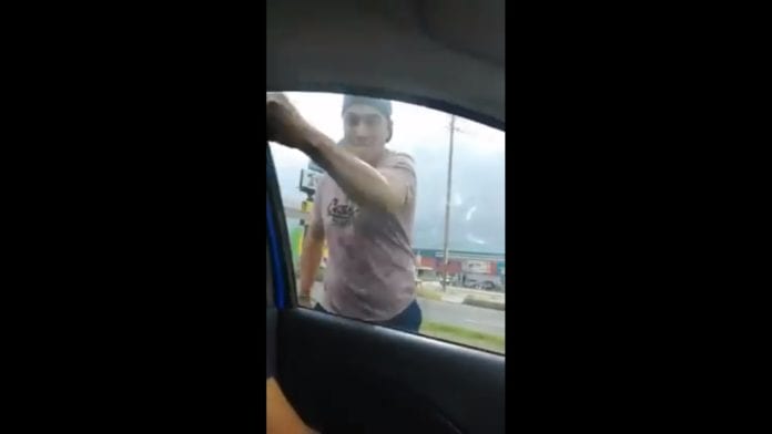 El copiloto descendió del vehículo y comenzó a golpear con el puño cerrado la ventana del automóvil contrario y luego de intentar abrir la manija, sin resultado, el agresor se dio la vuelta y regresó a su auto.