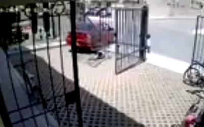 Una cámara logro capturar el momento en que un automóvil atropella a una pequeña.