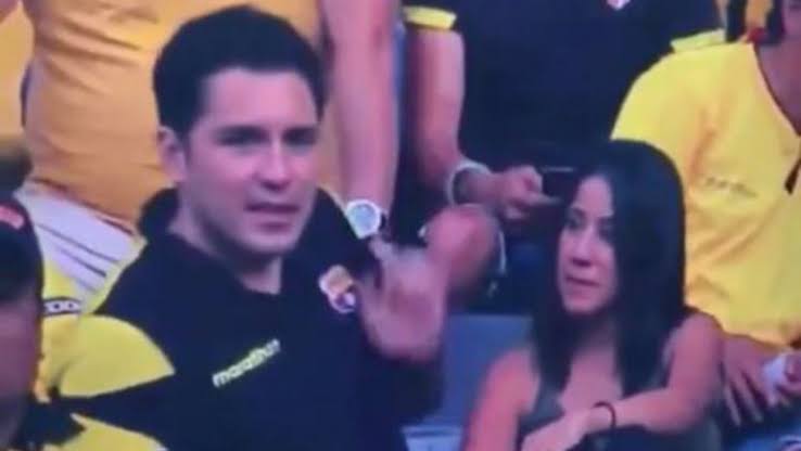 Aficionado es captado con su amante en el estadio, mientras presenciaba partido entre el Barcelona y Delfín, y su reacción se vuelve Viral.