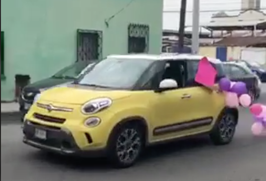 En el video se puede ver,  una caravana de aproximadamente 10 vehículos adornados con globos rosas, pasaron frente a su casa para festejar la celebración de la próxima llegada de Alexa. La festejada agradeció desde la puerta de su casa todos los detalles y la original celebración.