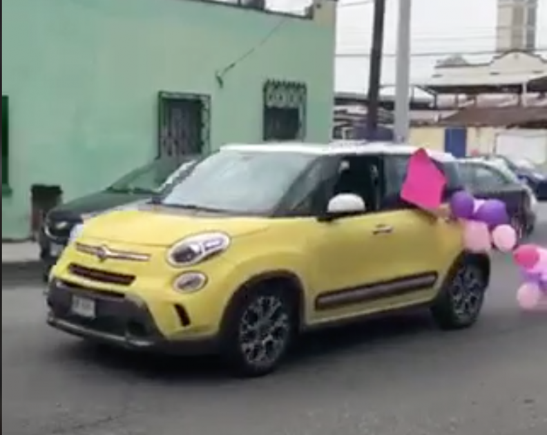 A pesar de la contingencia sanitaria por el Coronavirus, que se vive en el mundo una familia de la colonia Nuevo Repueblo organizó un baby shower muy original, dentro de un vehículo.