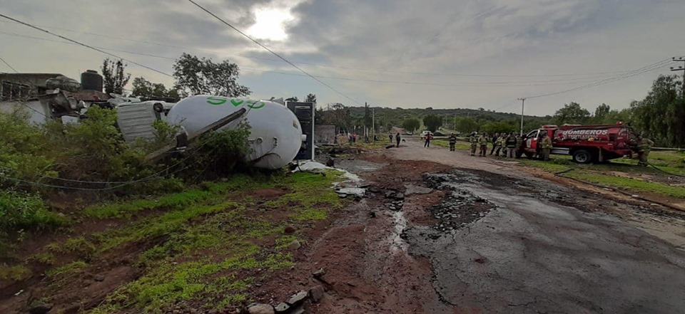 Al arribar al lugar, se percataron de una pipa de gas L.P. volcada y derramando combustible, por lo que actuaron de inmediato y lograron controlar la fuga.
